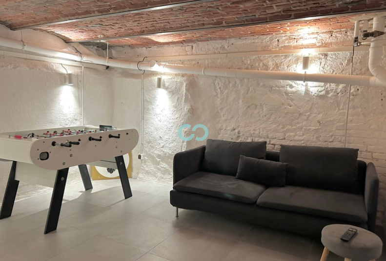 Les espaces communs comprennent un salon-séjour au charme préservé, une cuisine double entièrement équipée, ainsi qu’un sous-sol aménagé avec buanderie et salle de jeux, créant un cadre de vie chaleureux et fonctionnel.