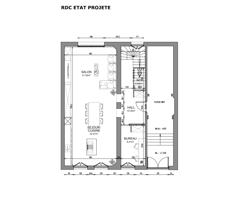 Le prix de vente est de 799 000 €, dont 30 000 € d’honoraires à la charge de l’acquéreur. La copropriété comprend 8 lots, avec des charges de 100 € par mois, et aucune procédure n’est en cours. Le DPE est classé D.
