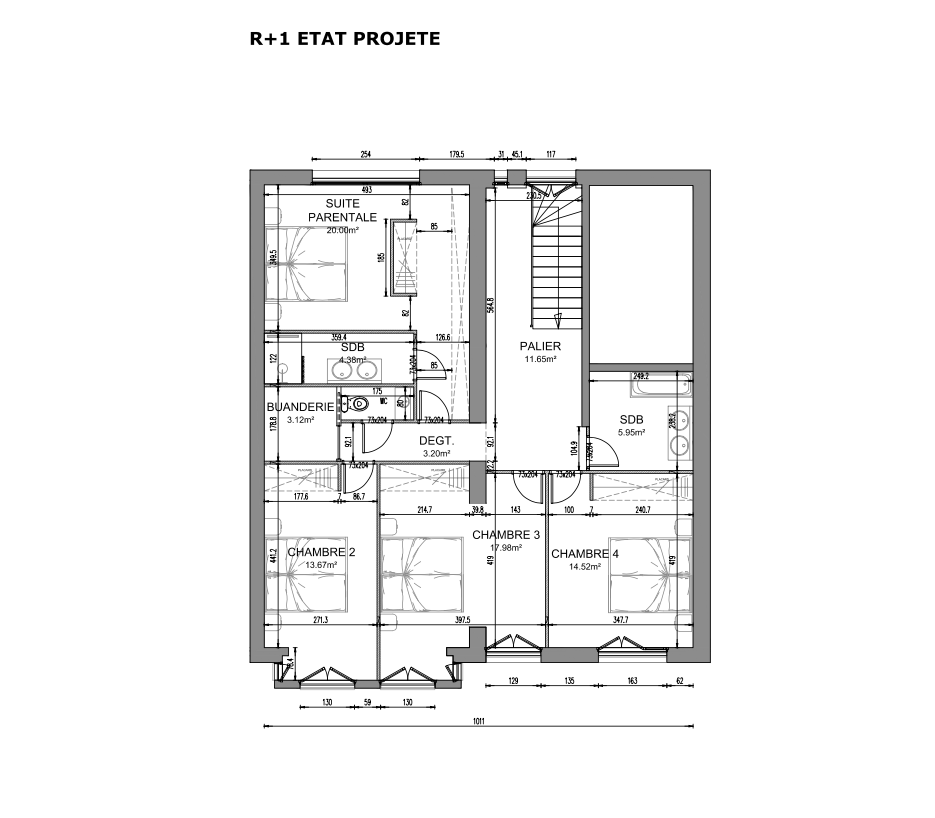 Le rez-de-chaussée s’ouvre sur une entrée qui mène à un salon-séjour lumineux et spacieux, prolongé par une cuisine américaine ouverte. Un bureau et un WC complètent ce niveau. À l’étage, la suite parentale bénéficie de sa propre salle de douche privative, tandis que trois autres chambres, une salle de bains, une buanderie et un WC offrent un confort idéal pour la vie de famille.